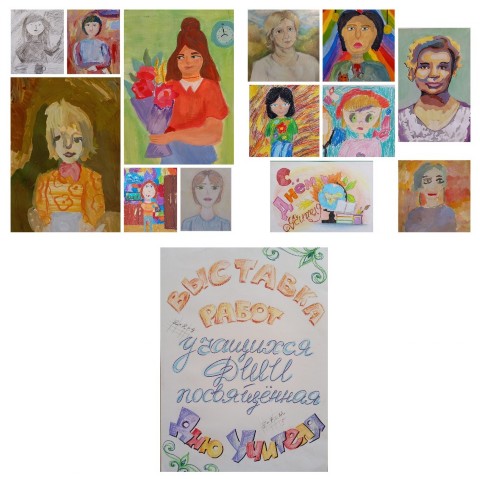 В актовом зале Детской школы искусств проходит выставка детского рисунка под названием "Мой учитель".