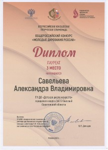 По итогам конкурса среди призеров - обучающаяся Детской школы искусств, Савельева Александра (диплом лауреата за 3-е место), преподаватель Алюшев Замир Нуртдинович.