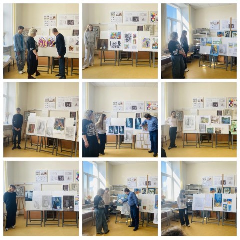 Ребята представили свои работы по рисунку, живописи, а также эскизы и наброски к станковой композиции.